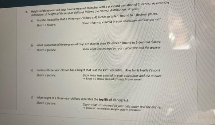 Solved 2 Heights Of Three Year Old Boys Have A Mean Of 38 Chegg Com